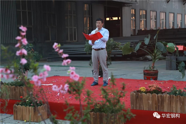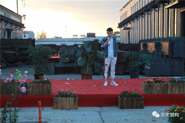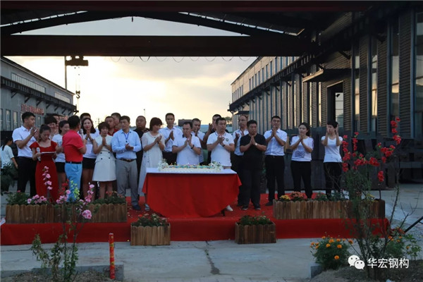 2018年8月8日晚18點00分,在公司鋼構(gòu)廠區(qū)華宏軒舉行了《華宏鋼構(gòu)九周年慶典》,公司董事長朱宏志、總經(jīng)理朱宏勇、財務(wù)總監(jiān)劉肖等公司領(lǐng)導(dǎo)和各界嘉賓參加了會議。以下為大會現(xiàn)場實錄。